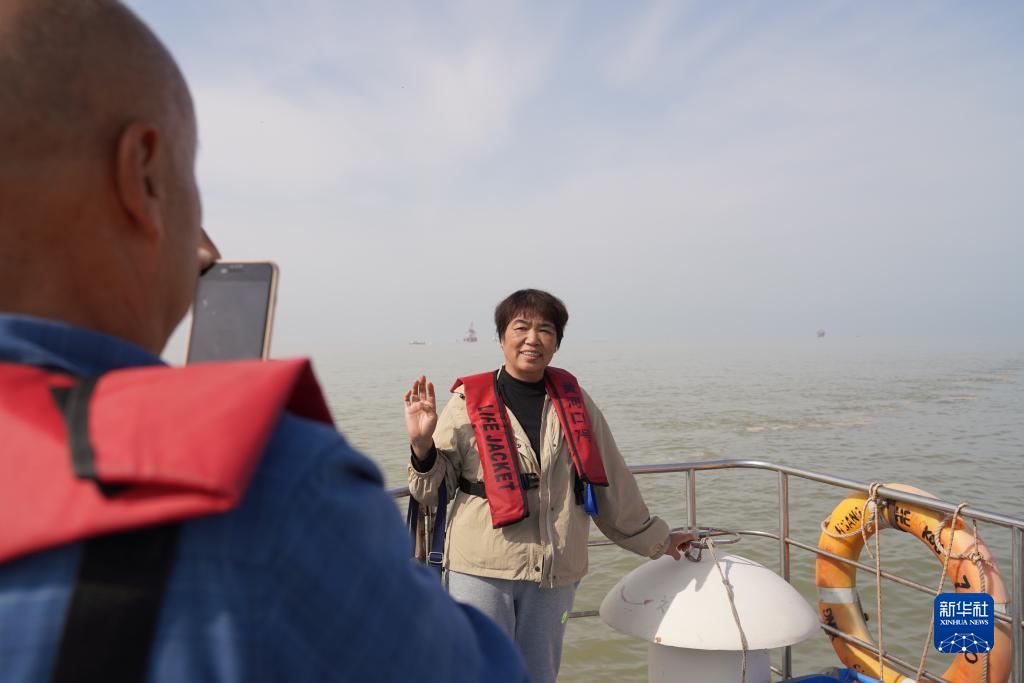 在山東省東營市黃河入???,黃河匯入渤海。黃色的河水和藍色的海水之間形成了一條“分界線”,河黃海清,涇渭分明。