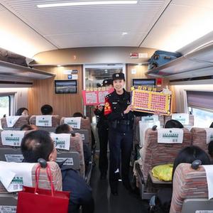 當日,沈陽鐵路公安局沈陽公安處乘警支隊女子乘務大隊民警走進高鐵車廂向乘客進行反詐騙宣傳和安全乘車宣傳,增強乘客保護人身和財產安全的意識。