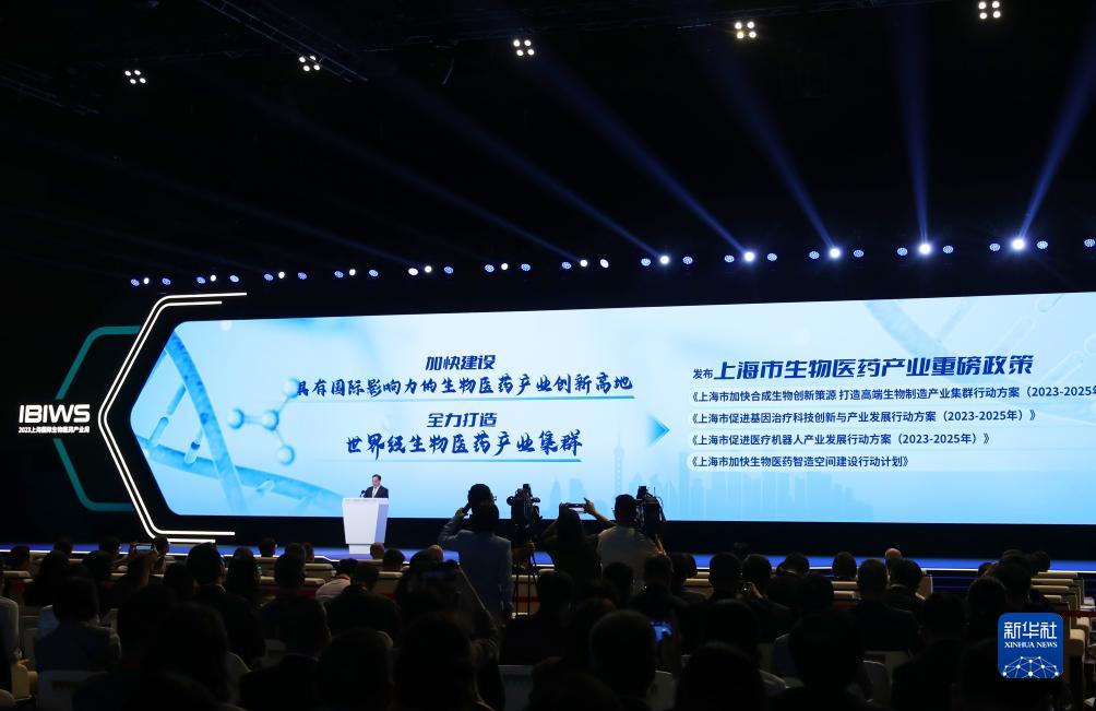 這是2023上海國際生物醫藥產業周開幕活動中舉行的上海市生物醫藥產業重磅政策發布儀式(10月16日攝)。