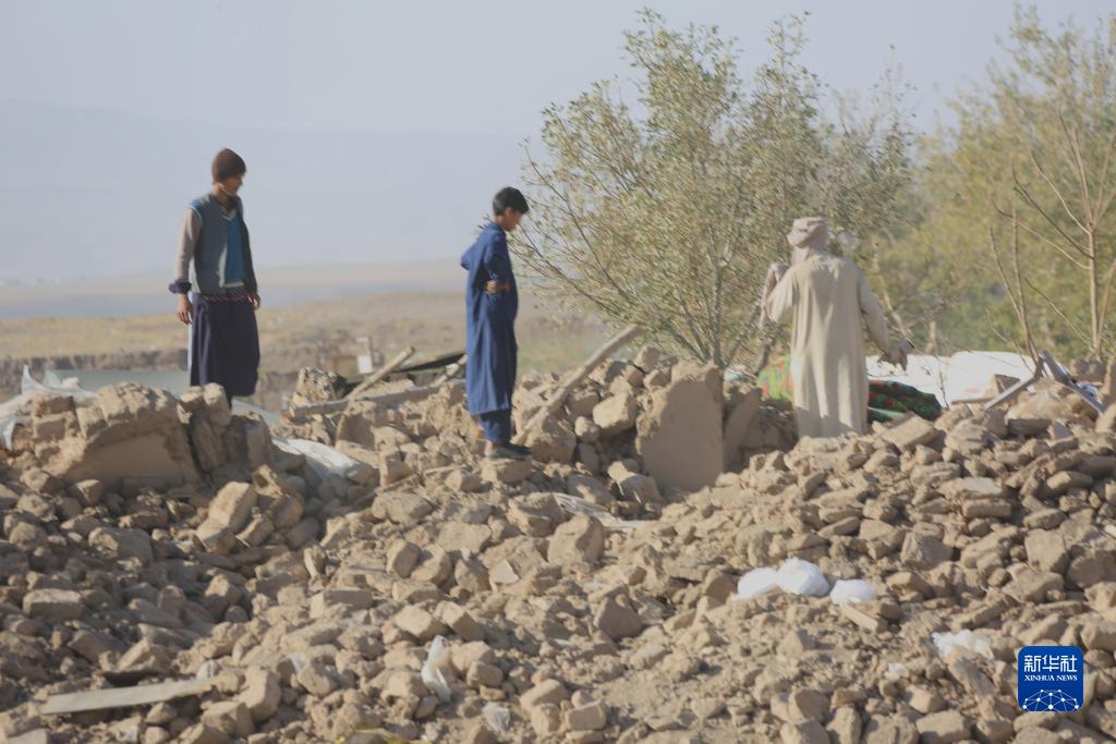10月16日,人們在阿富汗西部赫拉特省的地震廢墟上查看。