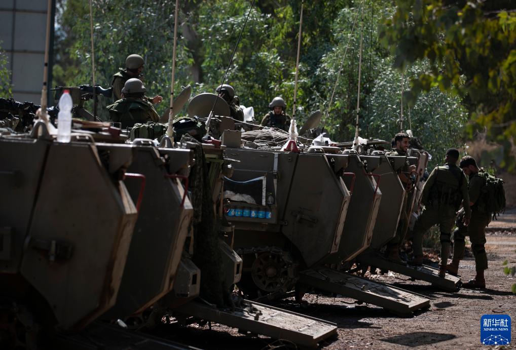 這是10月16日在以色列黎巴嫩邊境以色列一側營地拍攝的以軍戰車和士兵。