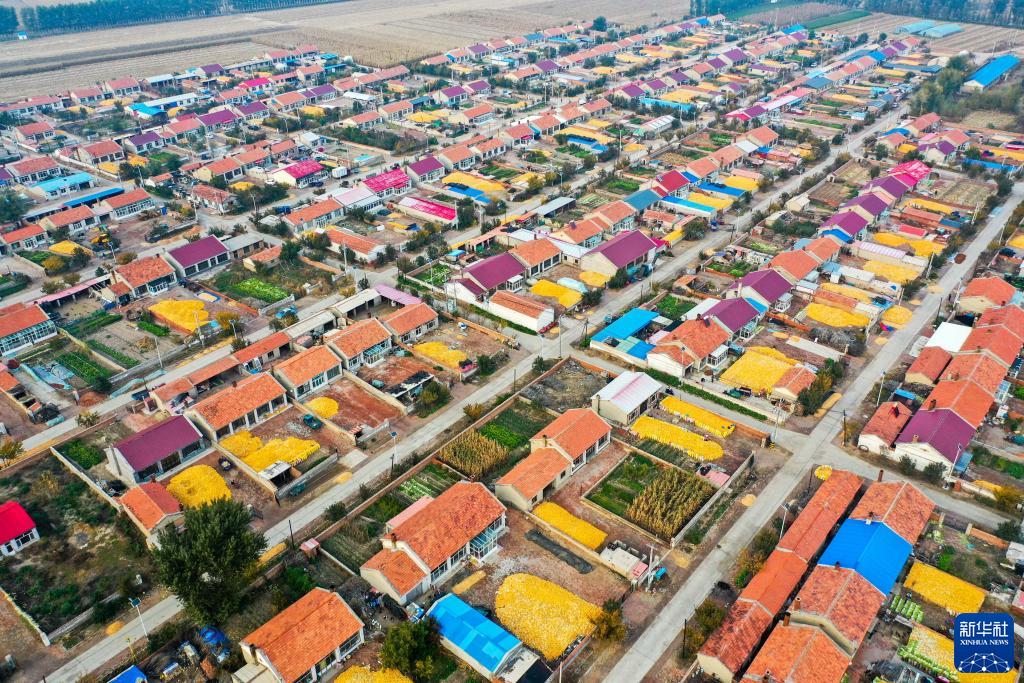 通遼市科爾沁區豐田鎮車力花村村民的小院里處處晾曬著玉米(10月13日攝,無人機照片)。