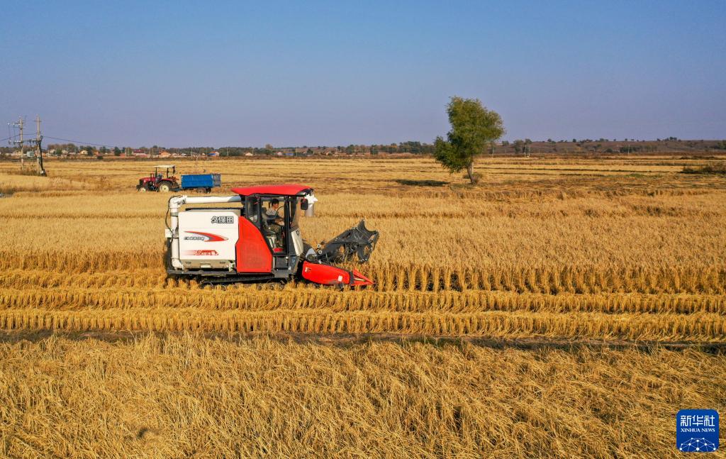 在通遼市科爾沁左翼后旗,水稻也收獲過半。今年夏季,科爾沁左翼后旗多個鄉鎮遭遇洪澇災害,但得益于提前疏通排干渠,當地水稻產量穩中有升。