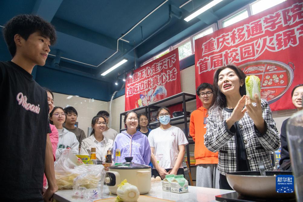 在重慶移通學院“綦河書院”的廚藝活動室內,學生在學習廚藝(10月11日攝)。