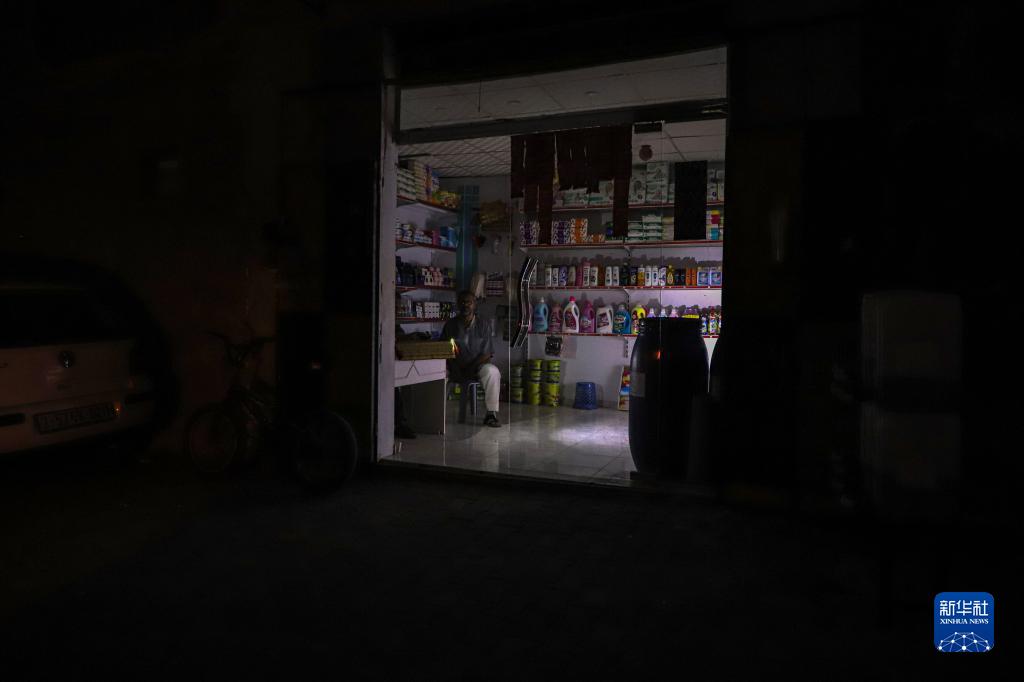 這是10月16日在電力短缺的加沙地帶南部城市汗尤尼斯拍攝的一個店鋪。