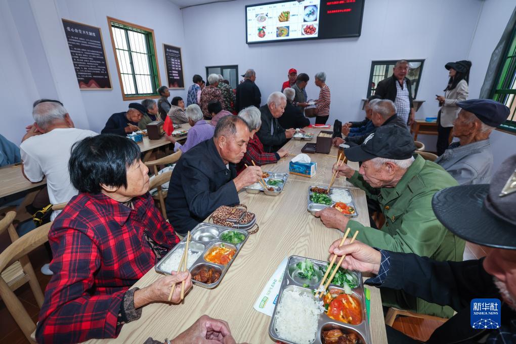 10月17日,老人們在東白湖鎮樂齡中心愛心食堂內用餐。