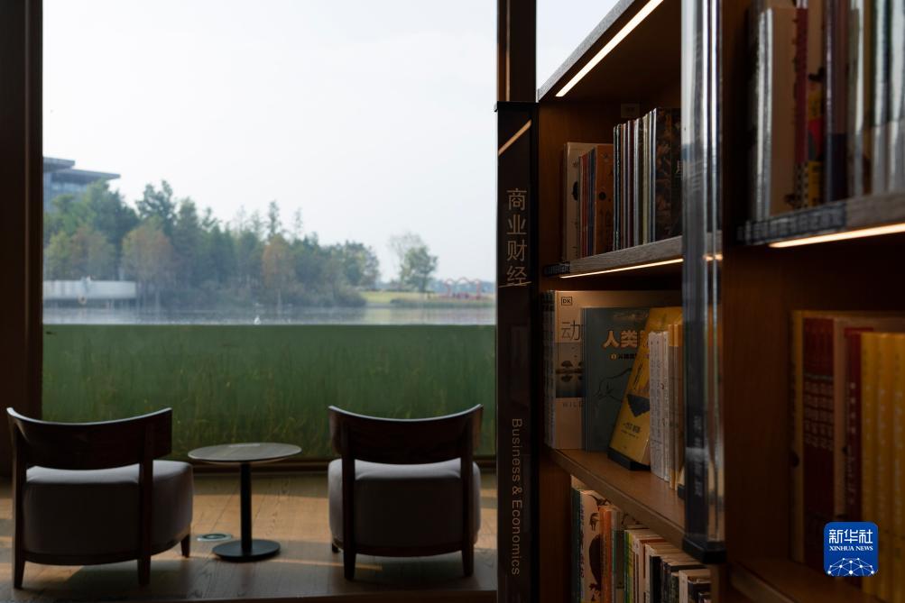 這是位于四川天府新區興隆湖畔的中信書店一景(10月16日攝)。書店四周被碧水青草環繞,臨湖一側是一面玻璃幕墻,一直延伸至水下。
