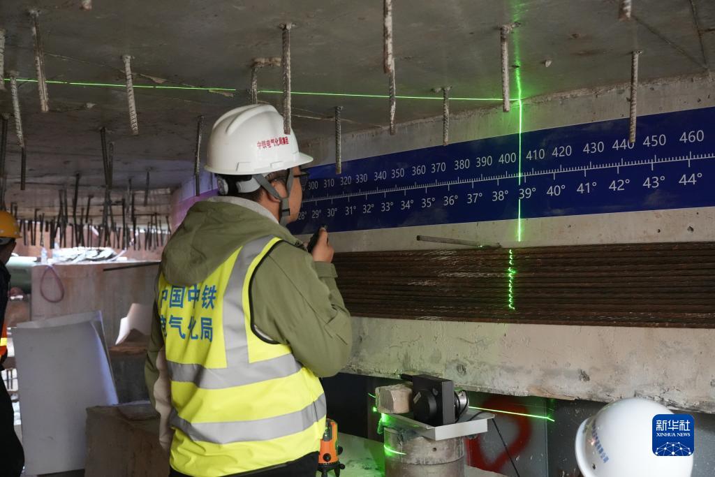 10月18日,施工人員在轉體現場查看轉體橋轉角位移數據。