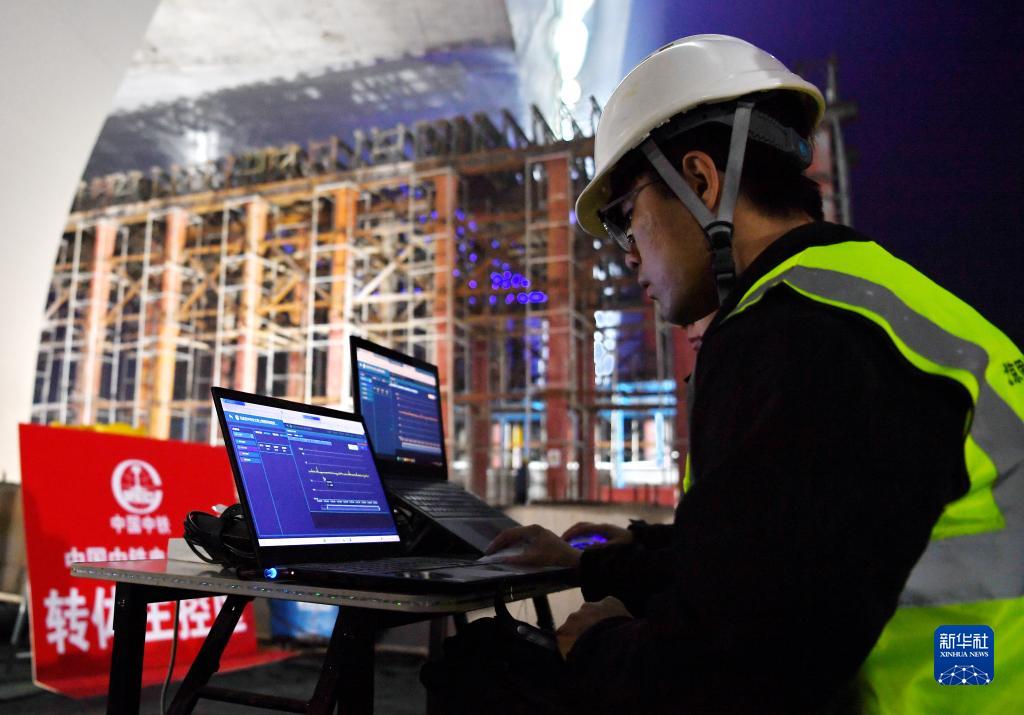 10月18日,施工人員在轉體現場監測相關數據。