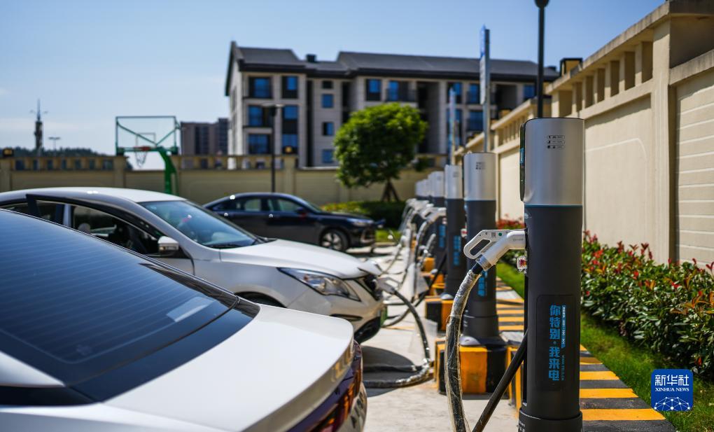新能源汽車在黔南布依族苗族自治州龍里縣谷腳鎮的充電樁設施充電(10月17日攝)。