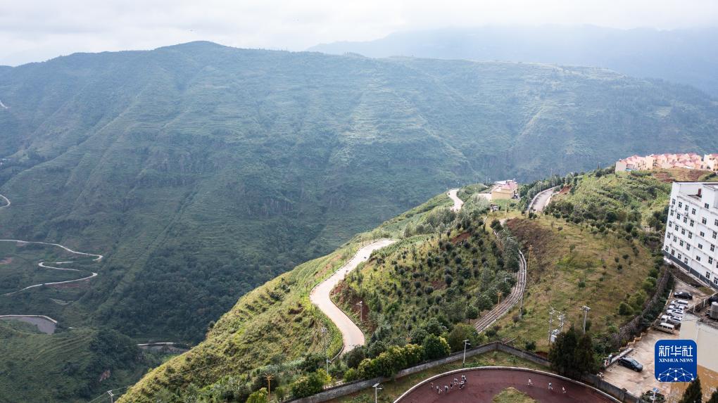 新能源汽車在盤州市烏蒙鎮的充電樁設施充電(圖右下)(9月21日攝,無人機照片)。