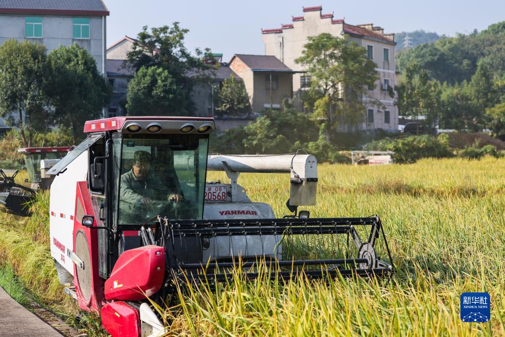 秋收時節,浙江省諸暨市陶朱街道推行“企業+合作社+農戶”專業化糧食生產加工一條龍模式,指導農戶搶抓天氣晴好的有利時機,加快秋收進度,提高秋收效率,確保糧食顆粒歸倉。