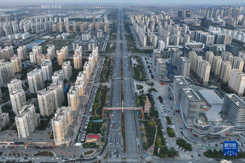這是10月17日拍攝的蘭州新區城市建設景色(無人機照片)。