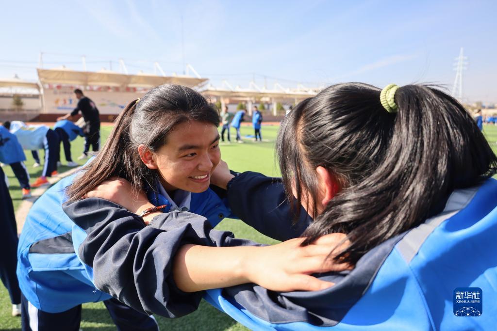 10月16日,蘭州新區高級中學的學生在上體育課。
