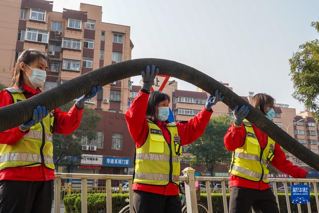 10月17日,濟南市城肥清運管理一處女子清疏班職工在清理城肥。