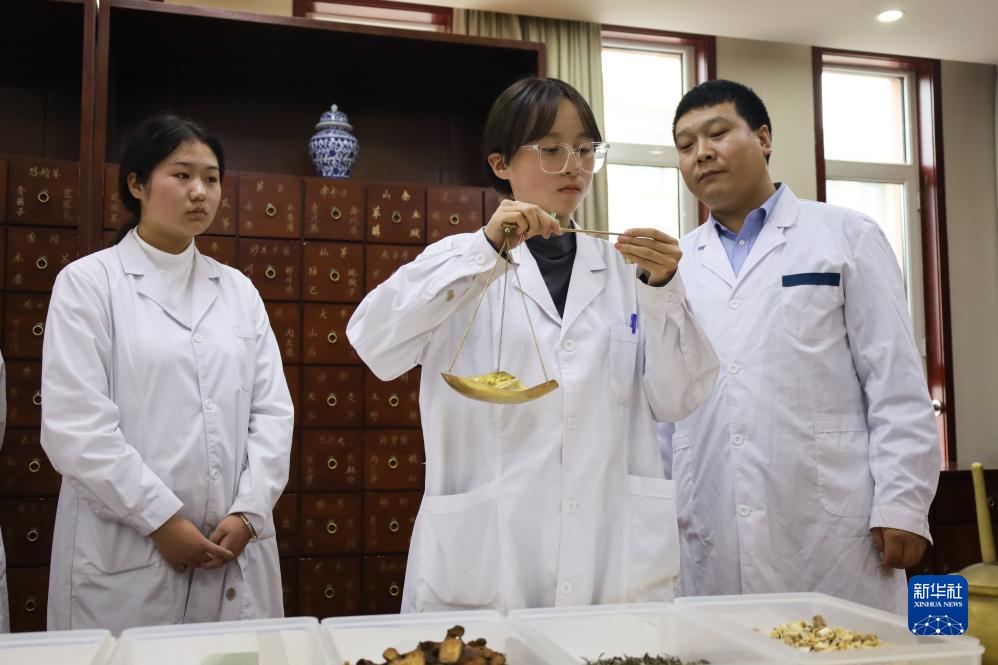10月17日,在甘肅省蘭州新區科教園區,甘肅省衛生職業學院中醫藥學院的學生在中藥調劑實訓室進行實訓課程。
