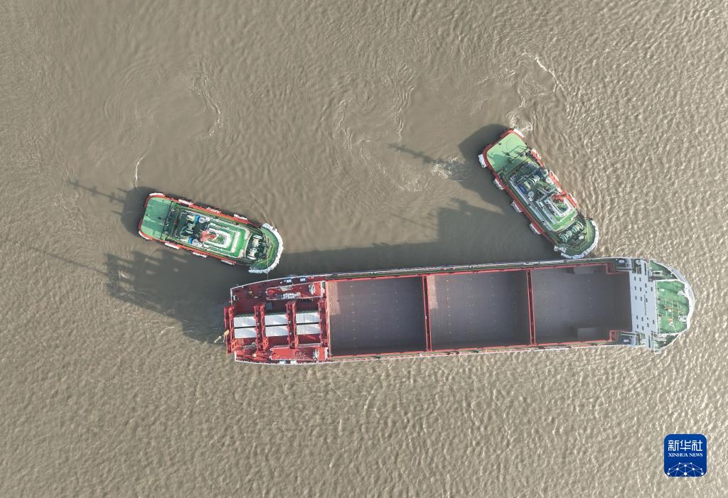 10月18日,中遠海運萬噸級電動集裝箱船離開碼頭準備試航(無人機照片)。