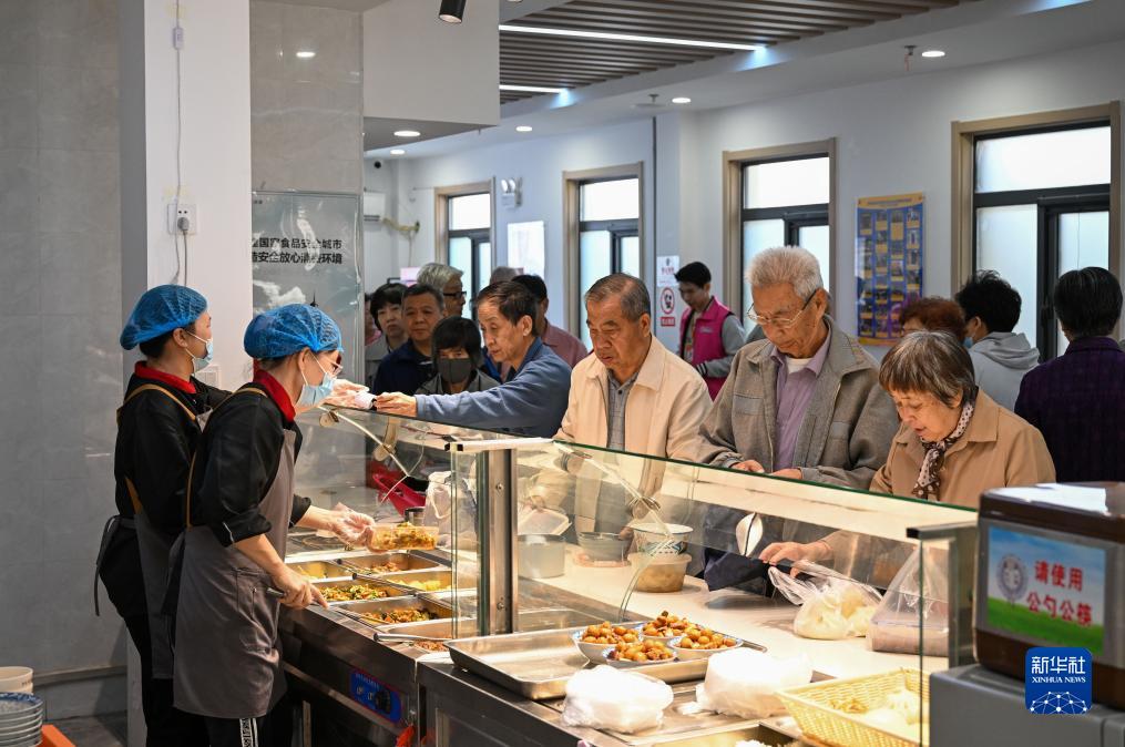 10月17日,工作人員在天津市河西區越秀路街道居家養老服務中心為老年人提供助餐服務。