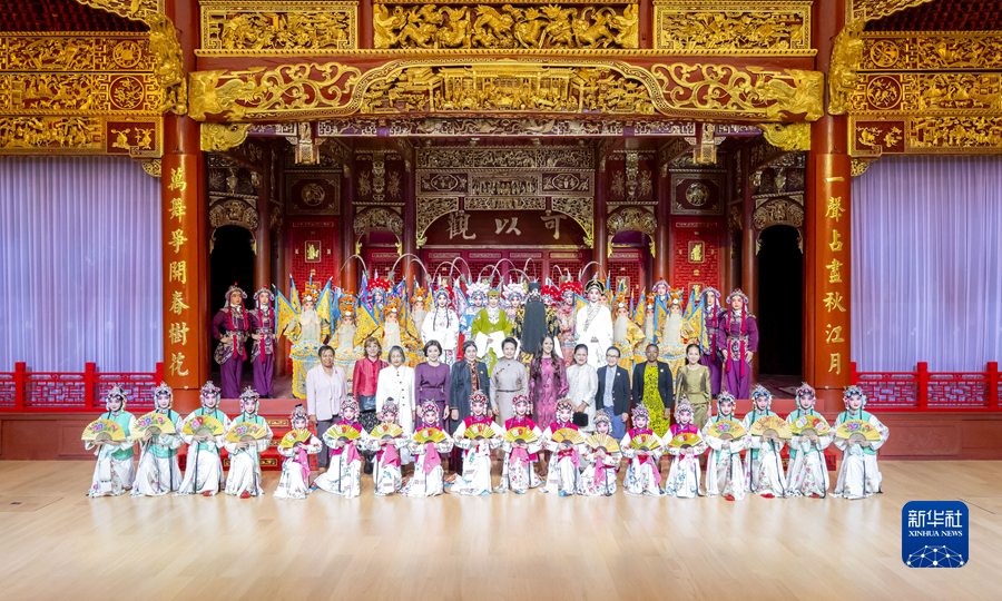 10月18日上午,國家主席習近平夫人彭麗媛邀請出席第三屆“一帶一路”國際合作高峰論壇的外方領導人夫人參觀中國工藝美術館(中國非物質文化遺產館)。這是彭麗媛同外方領導人夫人與文藝演出演職人員合影。