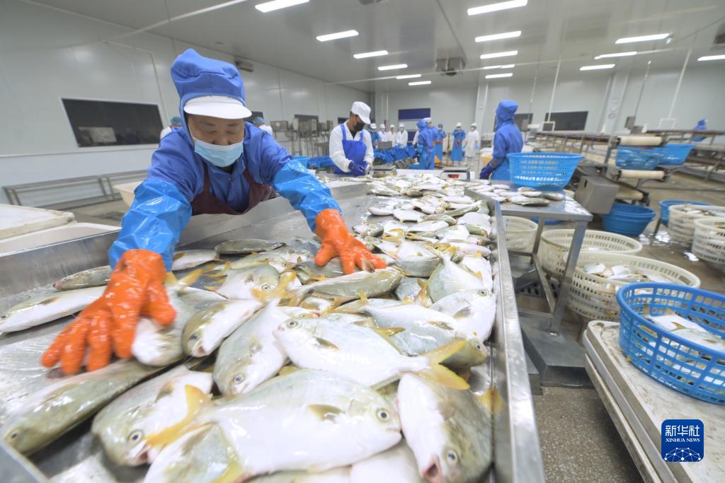 10月17日,位于中印尼“兩國雙園”的福建淼天匯食品有限公司員工在整理準備出口到印尼的魚產品。