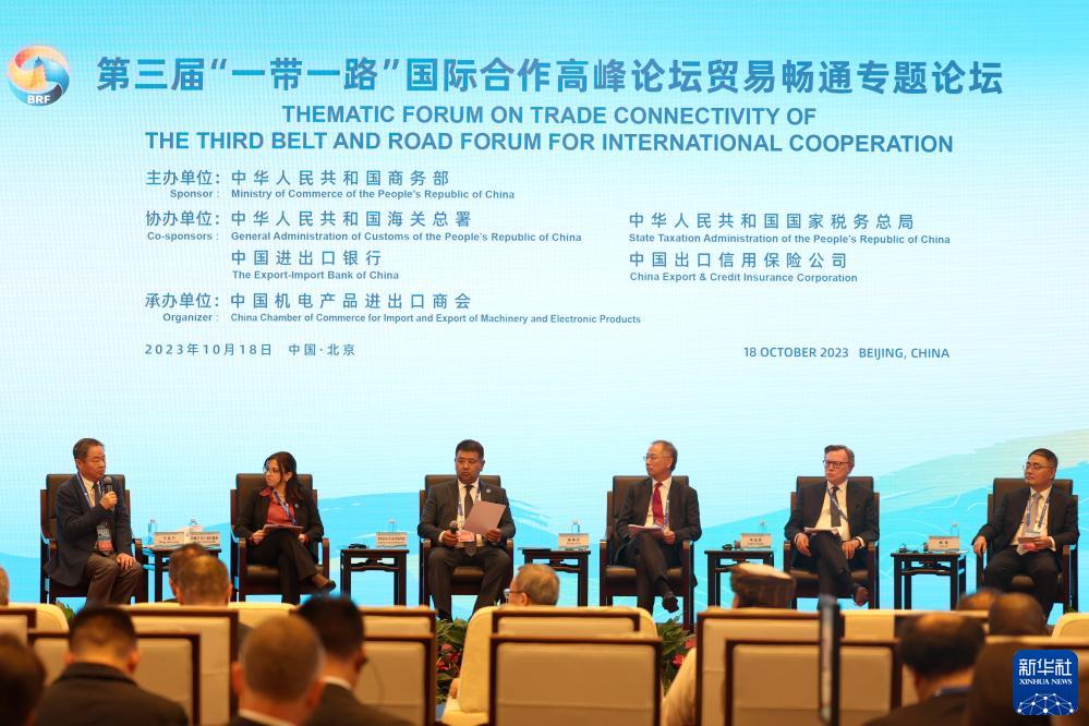 10月18日,第三屆“一帶一路”國際合作高峰論壇舉行貿易暢通專題論壇。新華社記者 陳斌 攝