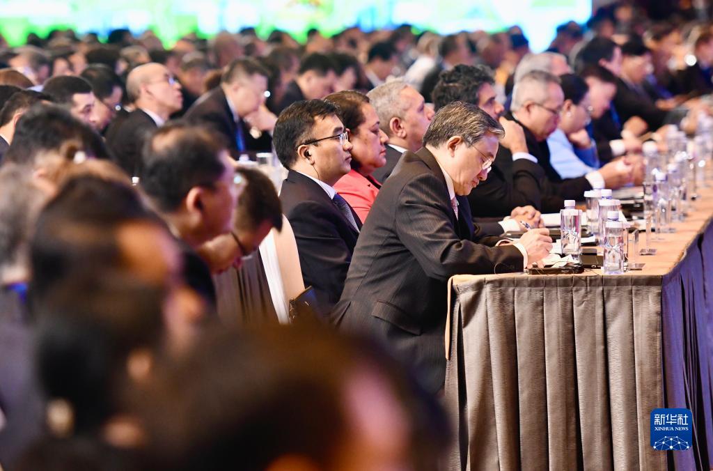10月18日,第三屆“一帶一路”國際合作高峰論壇在北京舉辦高級別論壇,嘉賓圍繞互聯互通、綠色發展、數字經濟主題進行深入交流。這是綠色發展高級別論壇現場。