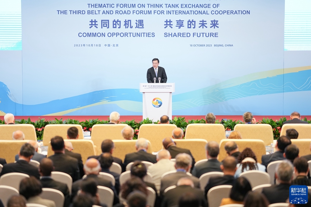10月18日,第三屆“一帶一路”國際合作高峰論壇智庫交流專題論壇在北京舉行。這是新華通訊社社長傅華在論壇上發言。新華社記者 彭子洋 攝