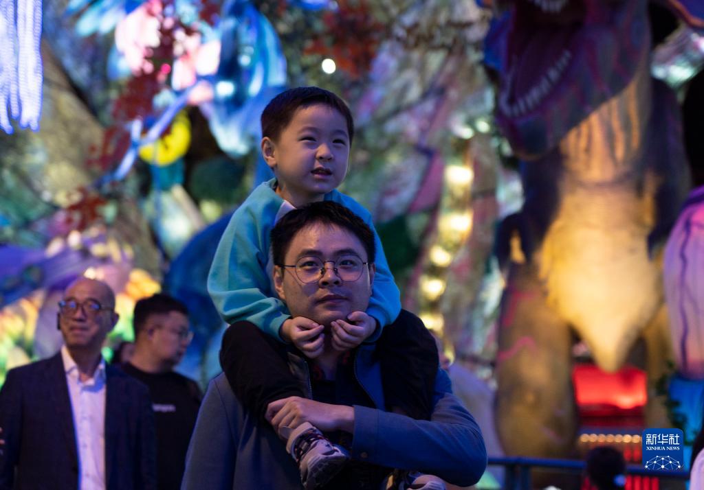 10月18日,在位于四川自貢的中華彩燈大世界,市民觀看彩燈。