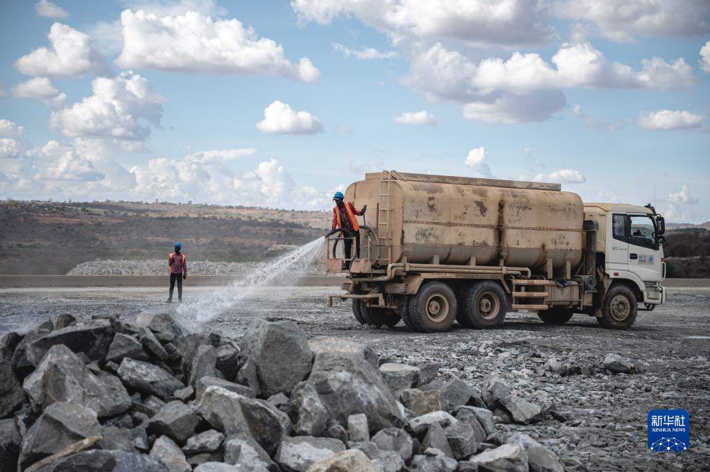 這是10月16日拍攝的肯尼亞斯瓦克大壩施工現場。