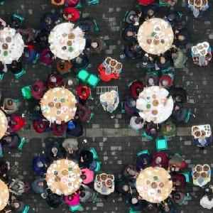 10月19日拍攝的華巖鎮石龍社區“長壽宴”活動現場(無人機照片)。
