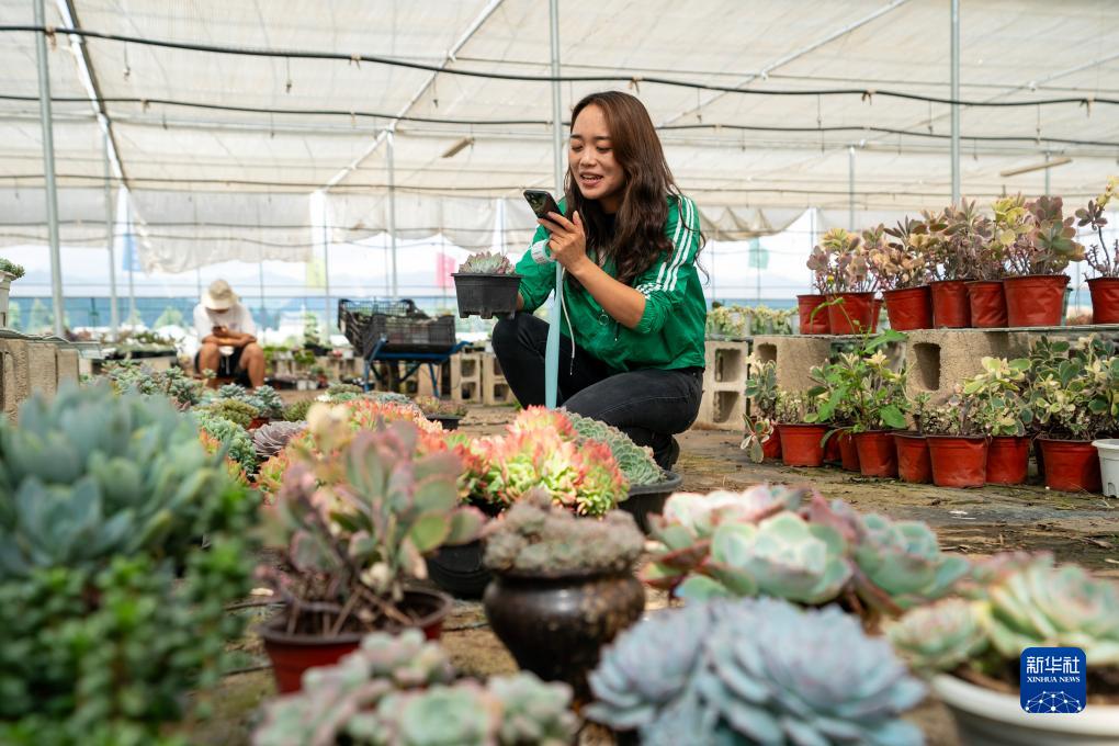云南省昆明市晉寧區寶峰街道多肉植物以成色好、品質高的優點吸引不少年輕創業者,依托“小多肉”開拓大市場。目前寶峰街道多肉植物種植面積超過6000畝,年產值超4億元。
