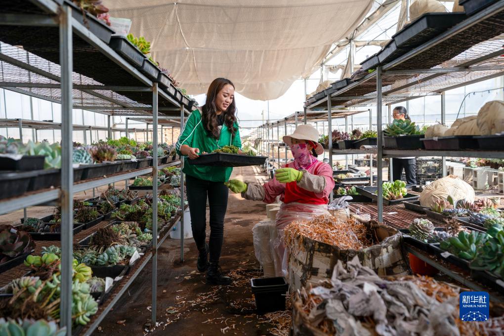 云南省昆明市晉寧區寶峰街道多肉植物以成色好、品質高的優點吸引不少年輕創業者,依托“小多肉”開拓大市場。目前寶峰街道多肉植物種植面積超過6000畝,年產值超4億元。