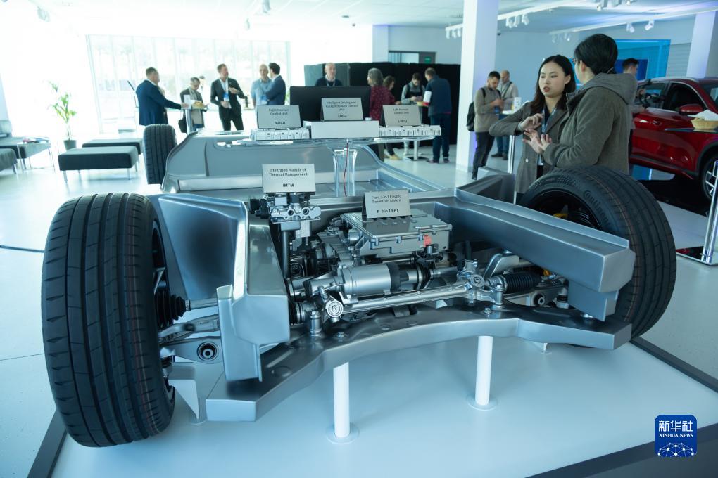 這是10月17日在匈牙利布達佩斯拍攝的比亞迪電動汽車底盤系統。