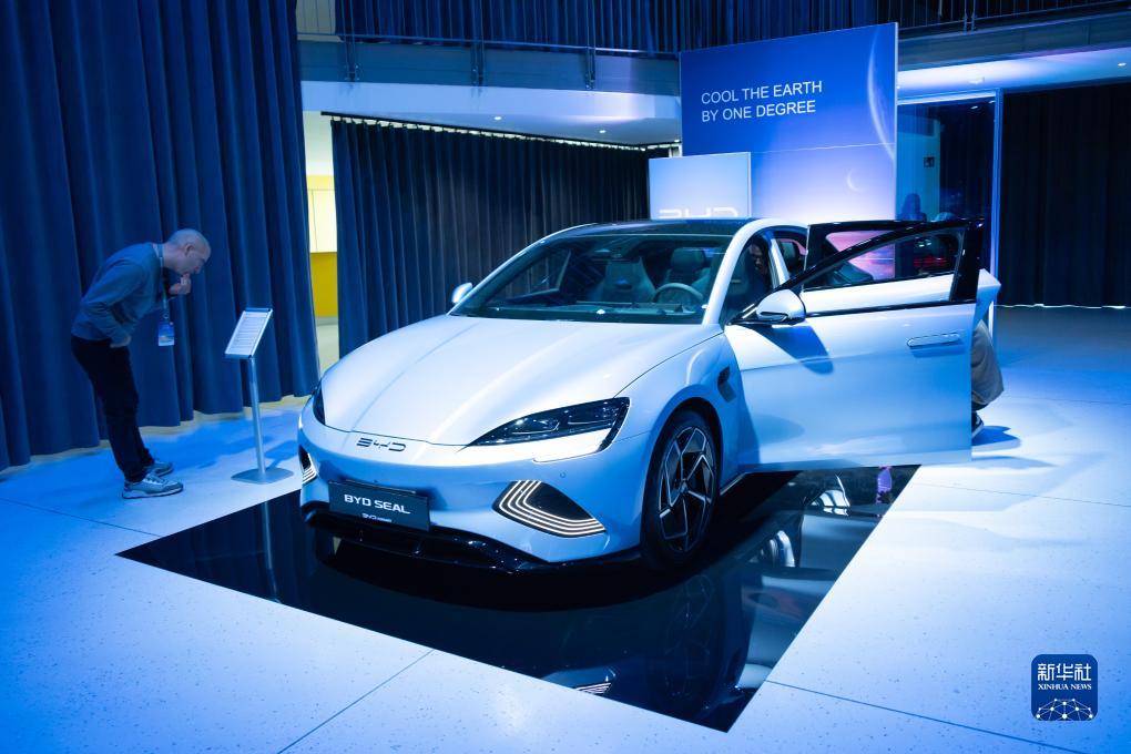 10月17日,在匈牙利布達佩斯,記者在媒體活動上查看比亞迪電動汽車。