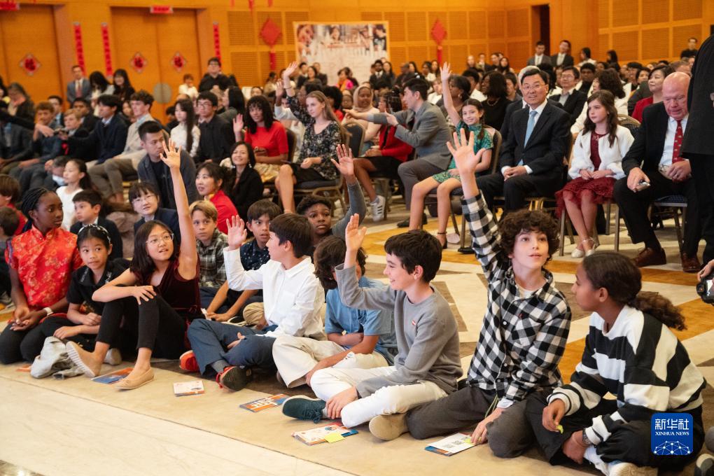 10月17日,在美國華盛頓,美國學生在《中文拼圖·我在美國學中文》紀錄片首映式上參加問答活動。