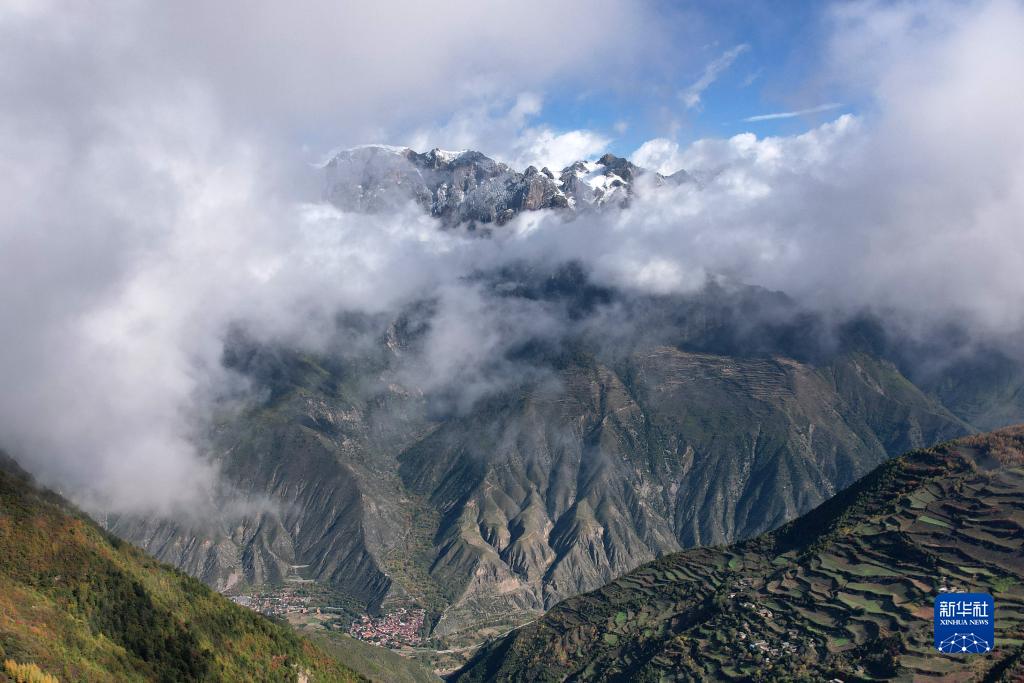 金秋時節,位于甘肅省甘南藏族自治州舟曲縣境內的拉尕山秋意漸濃,一場秋雪降臨后,拉尕山云纏霧繞,斑斕如畫。