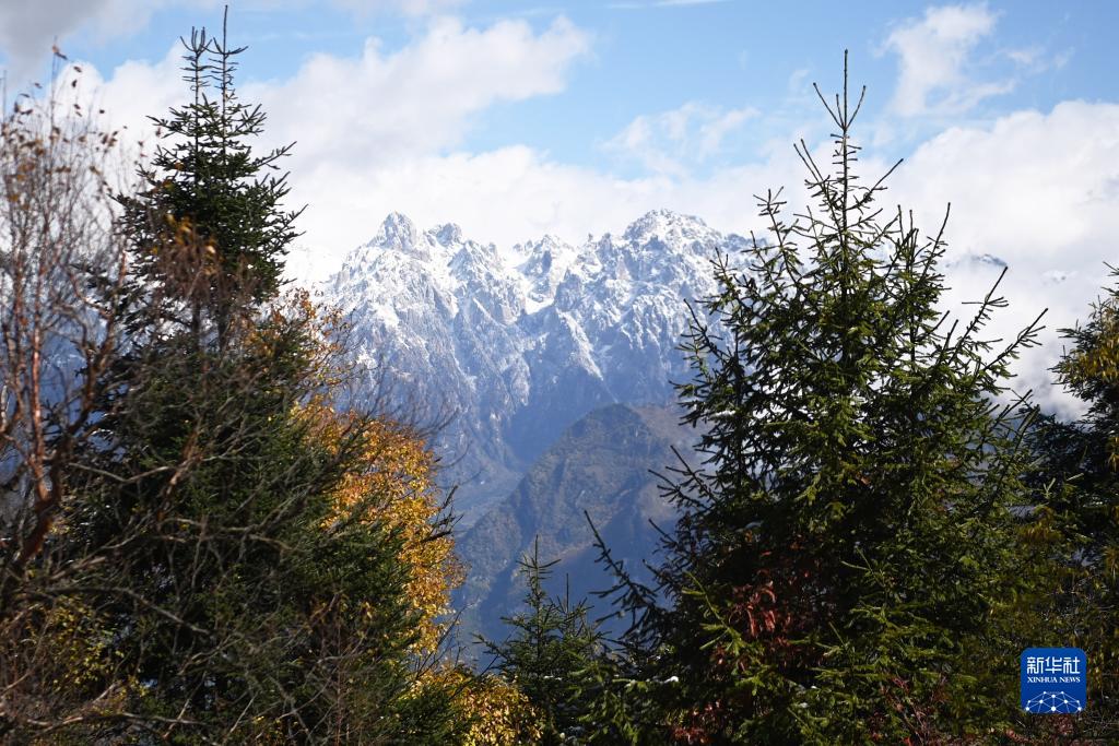 金秋時節,位于甘肅省甘南藏族自治州舟曲縣境內的拉尕山秋意漸濃,一場秋雪降臨后,拉尕山云纏霧繞,斑斕如畫。