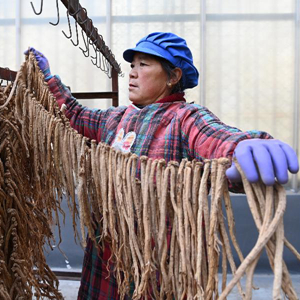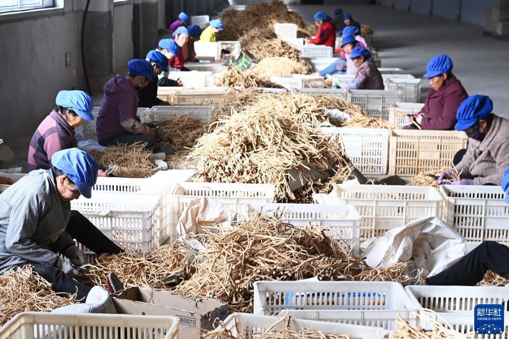 金秋時節,甘肅省定西市岷縣的黨參、黃芪等中藥材陸續豐收,當地中藥材企業組織工人加工晾曬。岷縣位于甘肅省南部,是西北中藥材主產區之一,全縣中藥材種植面積65萬畝左右。