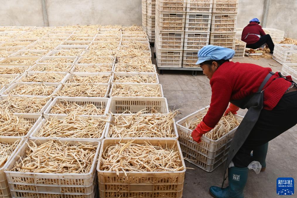 金秋時節,甘肅省定西市岷縣的黨參、黃芪等中藥材陸續豐收,當地中藥材企業組織工人加工晾曬。岷縣位于甘肅省南部,是西北中藥材主產區之一,全縣中藥材種植面積65萬畝左右。