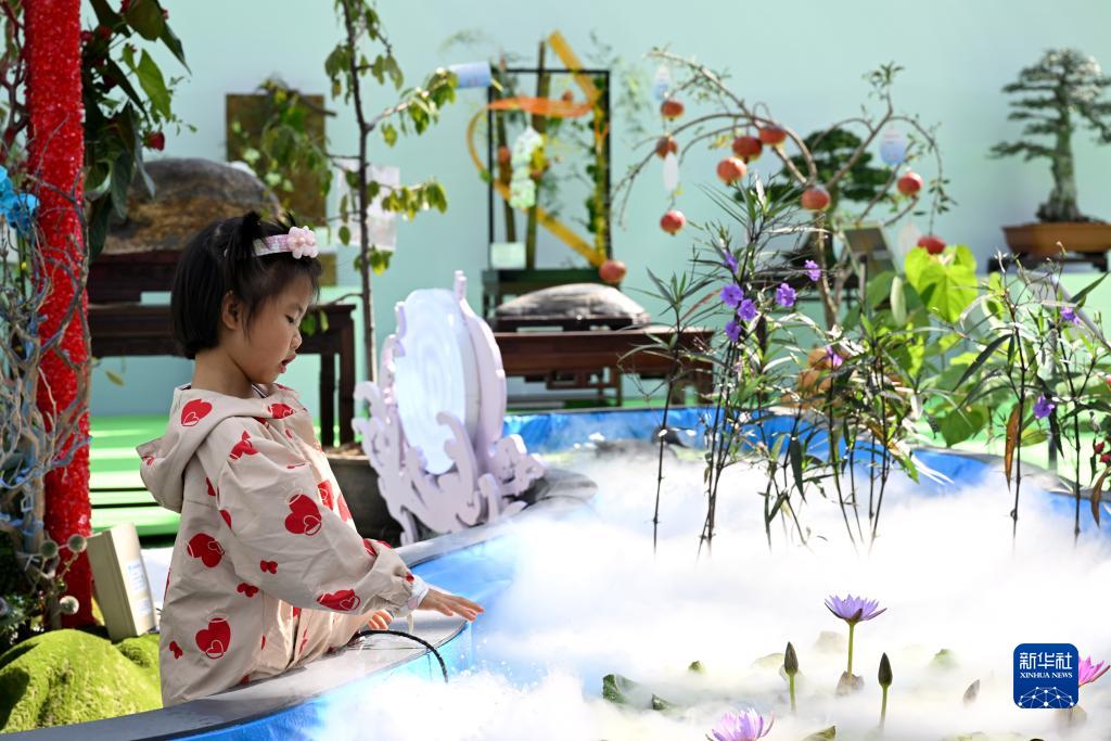 10月20日,一名小朋友在2023中國·合肥苗木花卉交易大會上參觀。