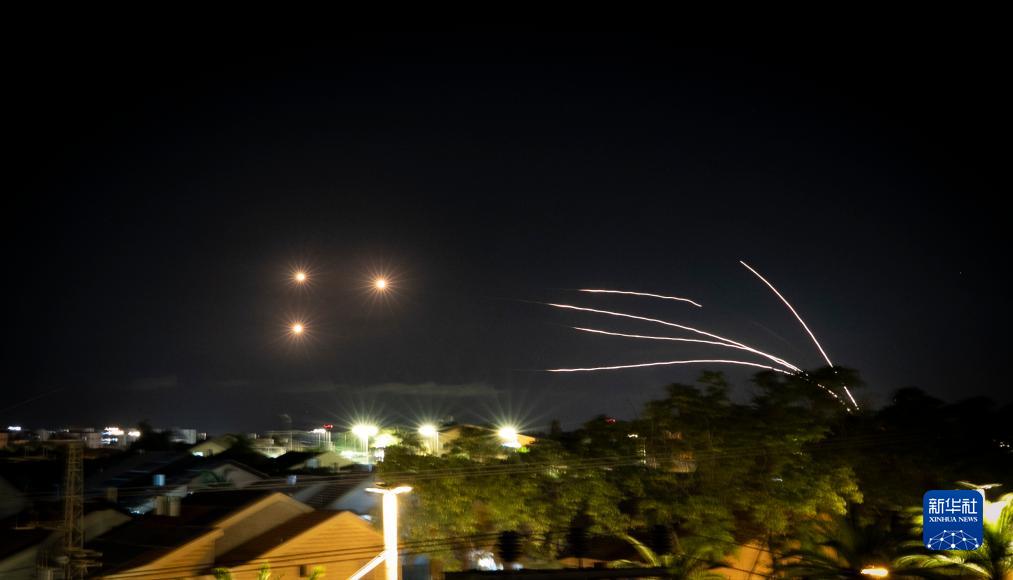 當晚,來自加沙的火箭彈不斷射向以色列南部邊境城市。以色列“鐵穹”防御系統劃破夜空進行攔截。