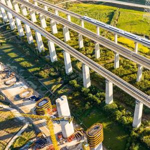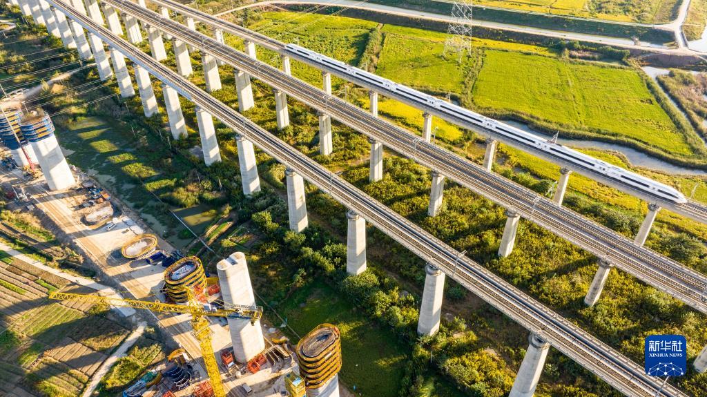 金秋時節,在中鐵四局巢馬城際鐵路建設工地,施工人員利用晴好天氣抓緊施工,確保重點工程建設進度。巢馬城際鐵路是國家“八縱八橫”高鐵網滬漢蓉快速通道合肥至上海間的重要組成部分,設計時速350公里。