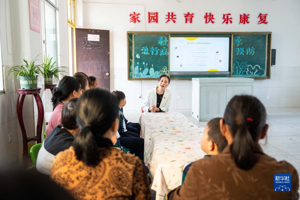 10月18日,常德市桃源特殊教育學校校長彭敏(中)在家長培訓活動上與學生家長溝通。