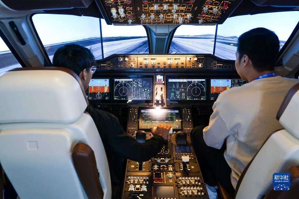 10月21日,市民在第十一屆中國(蕪湖)科普產品博覽交易會上體驗C919大飛機模擬駕駛艙。