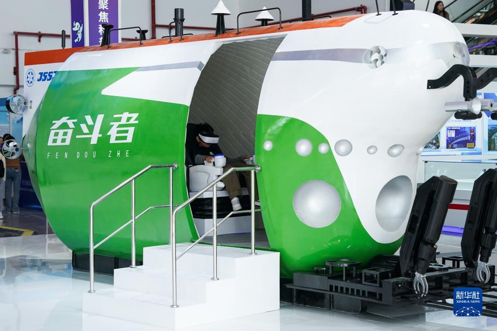 10月21日,一名小朋友在第十一屆中國(蕪湖)科普產品博覽交易會上體驗載人潛水器模擬座艙。