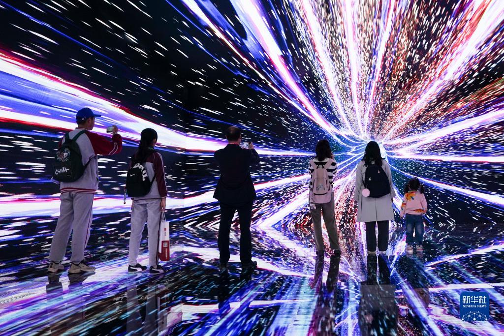 10月21日,市民在新華社媒體融合生產技術與系統國家重點實驗室的航天科普項目中沉浸式體驗航天元宇宙。