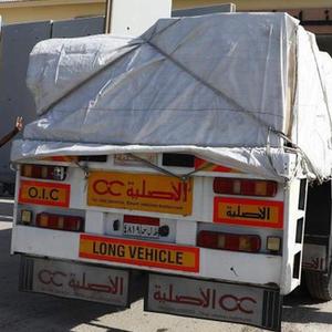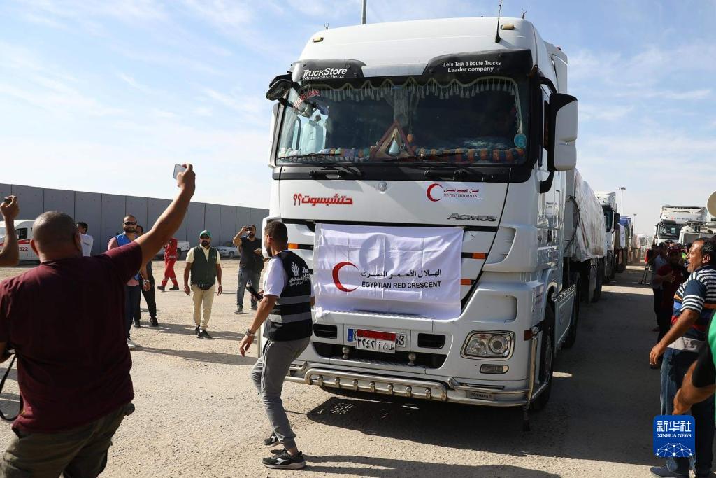 10月21日,在拉法口岸埃及一側,裝載有人道援助物資的貨車準備通過拉法口岸。