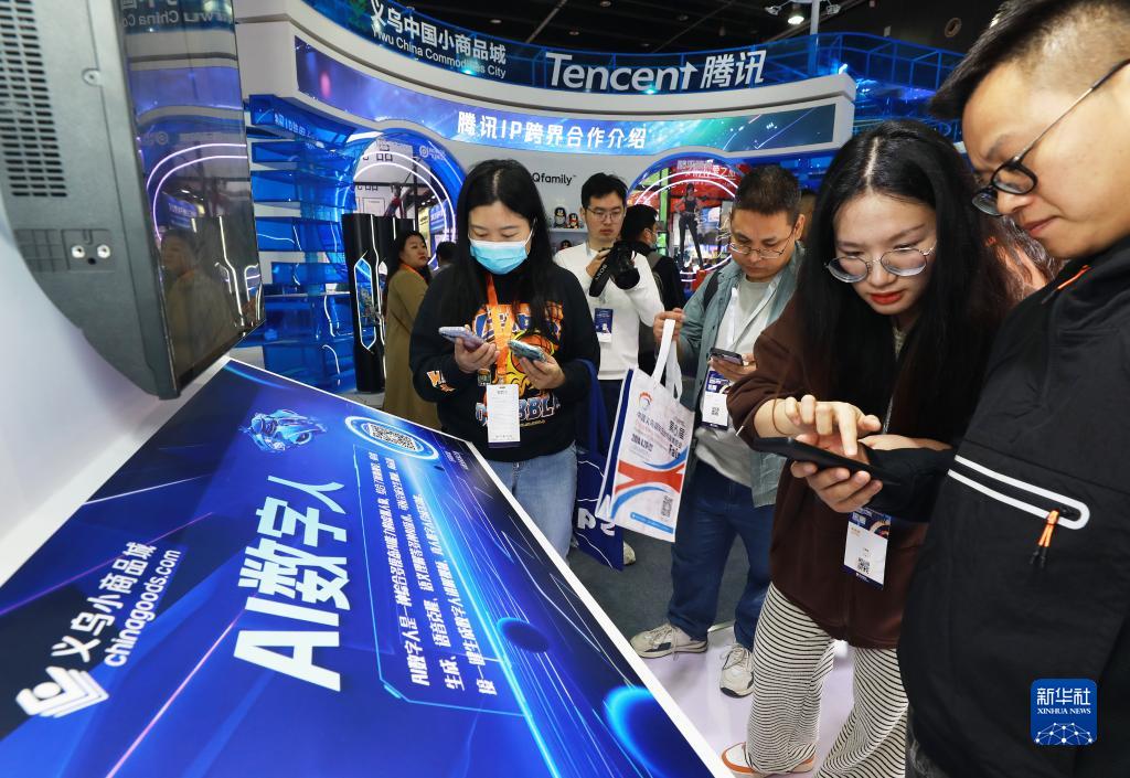 10月21日,在義博會“AI改變商業”主題展區,工作人員向客商介紹AI技術使用。