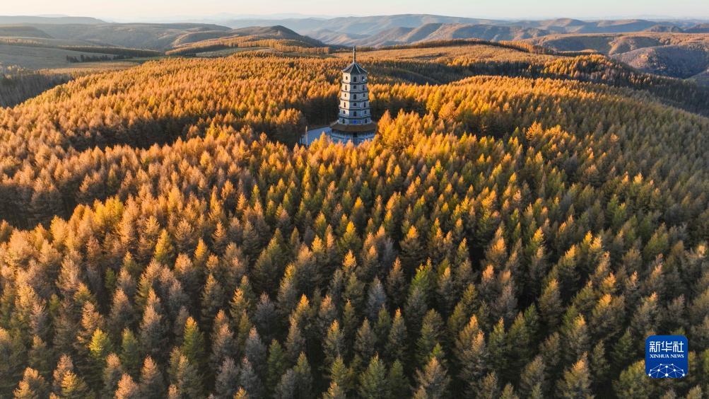 10月14日在河北承德拍攝的塞罕壩國家森林公園秋景(無人機照片)。