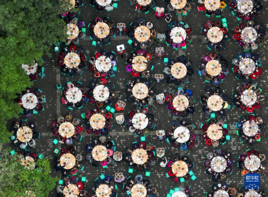 重陽節前夕,重慶市九龍坡區華巖鎮石龍社區開展“九九重陽節 濃濃敬老情”主題活動。600余位年滿60歲以上的社區老人共享“長壽宴”,在歡聲笑語中迎接即將到來的重陽節。